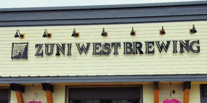 Zuni West Brewing exterior metal signage, interior art installations, and bar railings.